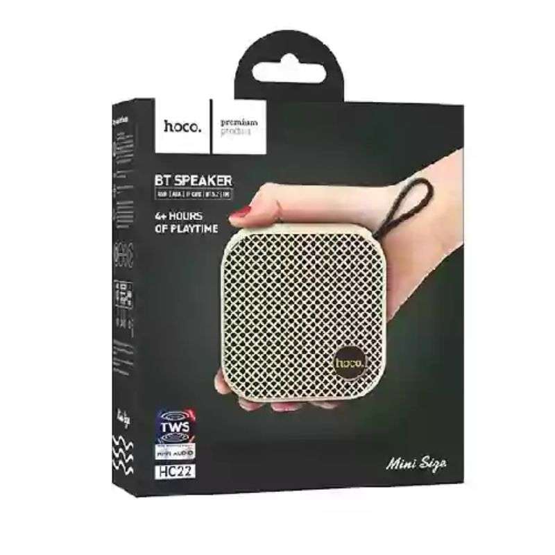Hoco HC22 Auspicious Sports Bluetooth Speaker compact and stylish speaker is designed to meet all your sound needs, whether you’re at home, in the great outdoors, or on the go. With a size of 95x95x45mm and a weight of just 272g, it’s easy to carry and will become your perfect travel companion. The Hoco HC22 boasts the latest Bluetooth 5.2 technology, ensuring a seamless and stable connection with your devices. Say goodbye to audio dropouts and enjoy your music without interruption. The Blue trum AB5365C chip further enhances its performance, delivering exceptional sound quality and range. Never worry about running out of battery when you have the Hoco HC22 by your side. Its built-in 1200mAh battery provides up to 4 hours of continuous playback on a single charge. Recharging is a breeze, with a quick 2-hour charge time. Whether you’re having an impromptu dance party or a relaxing evening on the patio, the Hoco HC22 has got you covered.